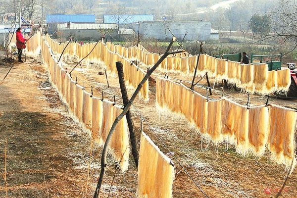 走进该村,记者被古朴而充满生机的山村,忙碌的生产情景和遍野晾晒的粉条所打动,用手中的相机,记录了这独具特色的劳动场面(如图)。