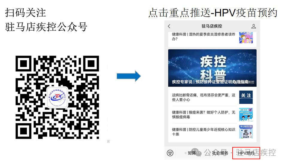5.本次预约的九价hpv疫苗数量有限,生产企业后续将会逐批供应,请大家耐心等待,再次预约疫苗的时间以“驻马店疾控”公众号公告为准。