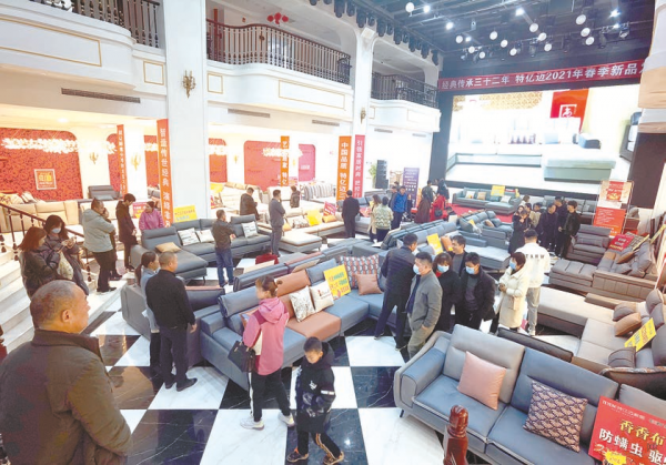 特亿迈家居今年推出的新品沙发由特殊布料制作而成,其中纳帕皮的特点是比皮柔软比布耐用,成为顾客首选。另外,香香布由于布料本身散发的香气,能够防螨、驱蚊,也为众多顾客所喜欢。