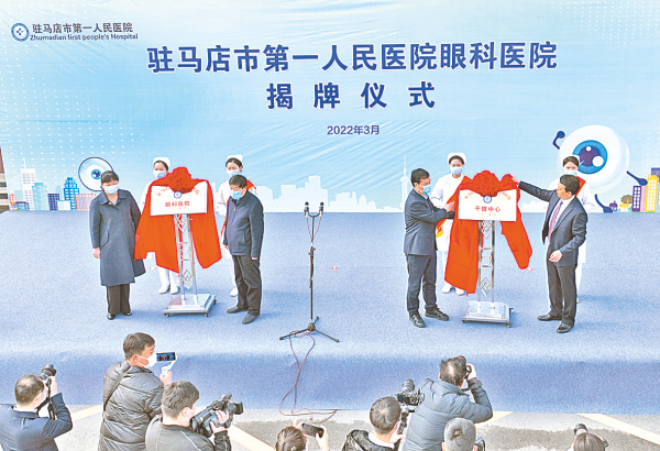 3月18日上午,驻马店市第一人民医院眼科医院揭牌仪式在市区雪松大道西院区举行,这标志着市第一人民医院眼科专业历经几代人的努力,实现了人才、技术和设备的同步发展,由成立时的眼科门诊发展成为驻马店市设备完善、技术力量雄厚、规模较大的集眼科医疗、教学、科研于一体的现代化眼病专科医院。新的起点,市第一人民医院眼科医院将以揭牌仪式为契机再次扬帆起航,为驻马店市人民眼科健康事业发展作出积极的贡献。