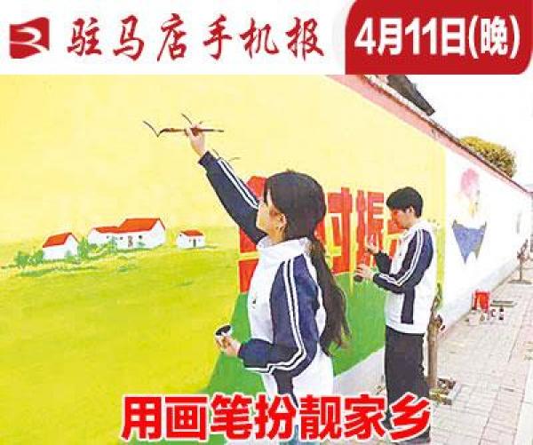 清明节假期,学习美术的在校大学生李欣桐回到老家驿城区沙河店镇大李庄村,和同学赵云浩一起义务设计墙绘,受到村民称赞。(记者 王伟)