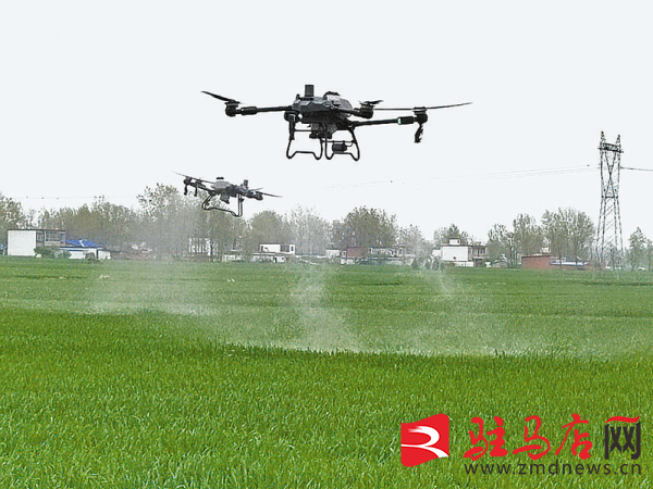 4月14日,正阳县熊寨镇王大塘村村民在高标准示范田,使用无人机对小麦进行“一喷三防”作业,防控小麦赤霉病。当前,该县180万亩小麦进入扬花盛期,正阳县农业农村局组织科技服务队,深入各乡村,现场指导农民对小麦赤霉病等病虫害统防统治,确保夏粮安全稳产、品质优良。
