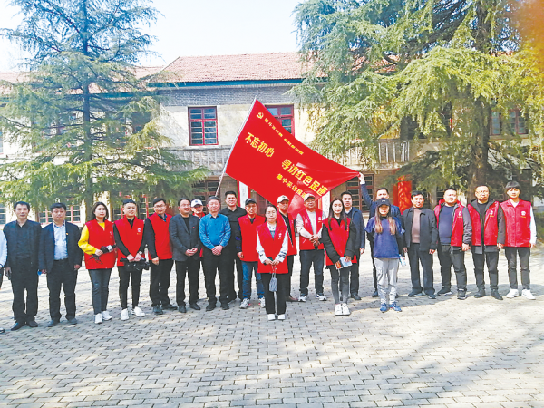 图一:采访团和工作人员在嵖岈山卫星人民公社旧址前合影。