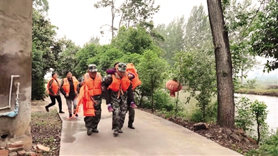 应急救援人员转移“受灾”群众