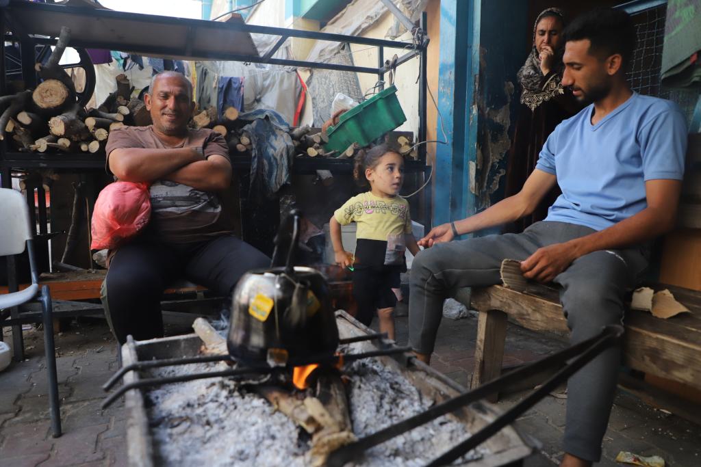 5月5日,巴勒斯坦人在加沙地带北部杰巴利耶难民营一所收留无家可归者的学校内烧水。新华社发(阿卜杜勒拉赫曼·萨拉马摄)