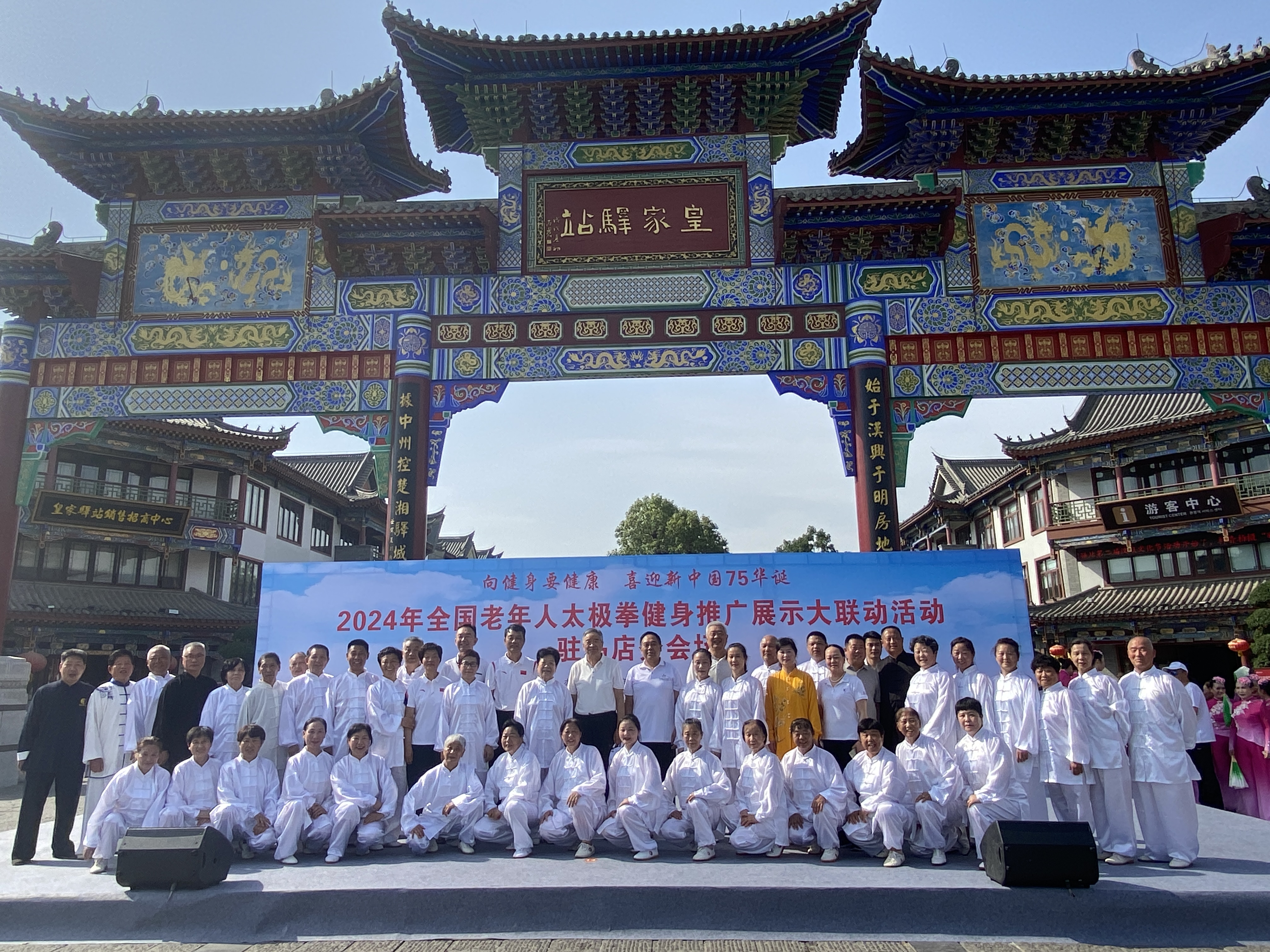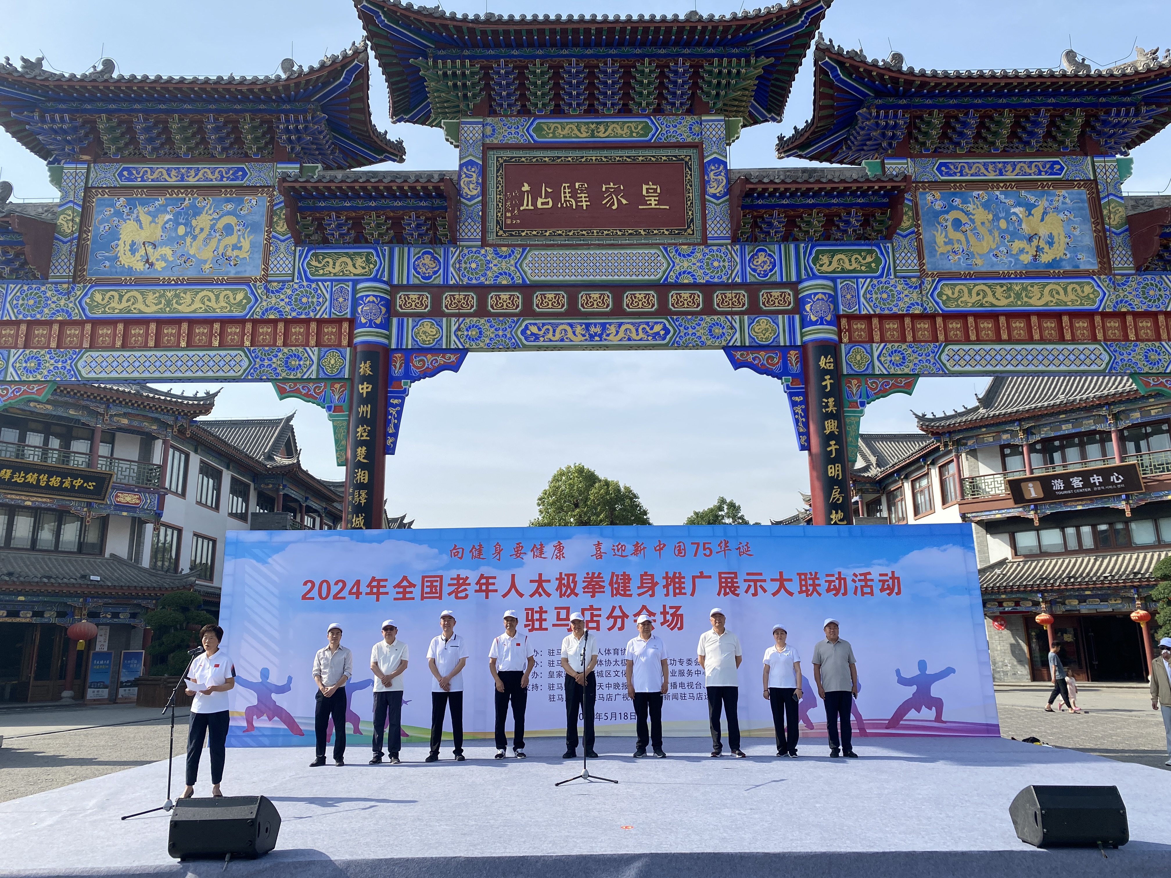 驻马店网讯(记者 郭诗玮)5月18日,2024年全国老年人太极拳健身推广展示大联动活动(驻马店分会场)在驻马店皇家驿站成功举办。市老年人体育协会主席邓来法,市卫健体委二级调研员王睿,市老年人体育协会副主席李建华、黄庆伟、姚新建、刘新茹,市老年人体育协会太极拳、健身气功专委会主任田江萍,驿城区文化旅游创意产业服务中心主任刘雁飞,驻马店皇家驿站旅游运营总监杨肖龙出席活动。