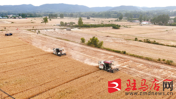 5月21日,确山县任店镇陈门店村村民利用晴好天气抢收小麦,确保颗粒归仓。当地政府部门组织党员干部组成“三夏”服务队,协助村民抢机收、抢晾晒,安排对接粮食收储企业及时做好粮食收储转运工作,让种植户吃下“定心丸”。