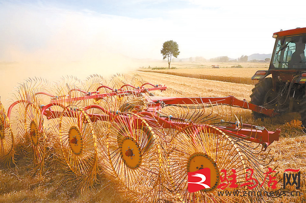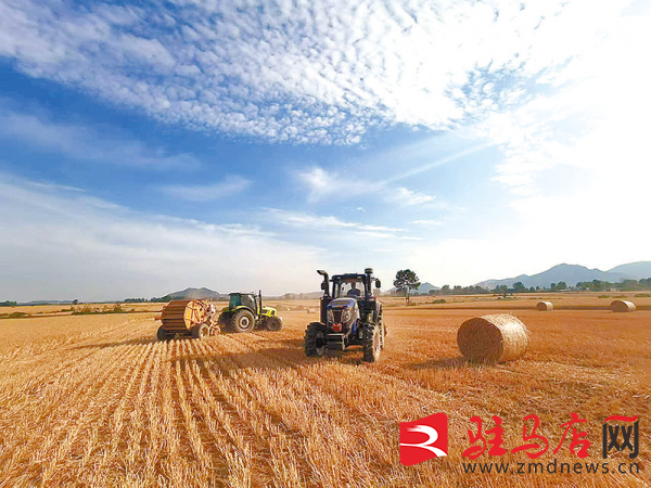 驿城区朱古洞乡部分村地处山区丘陵地带,小麦成熟早,该乡积极组织协调收割机、打捆机等大型机械300多台趁天抢时收割。