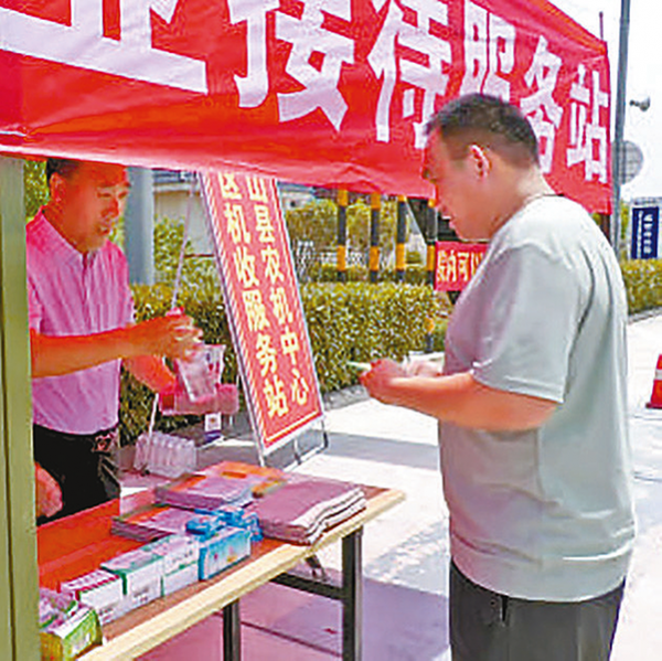 “欢迎来到确山。”服务站里,确山县农机中心工作人员刘东升热情地递上“三夏”礼包:毛巾、矿泉水、方便面,还有防暑降温的日常用品。