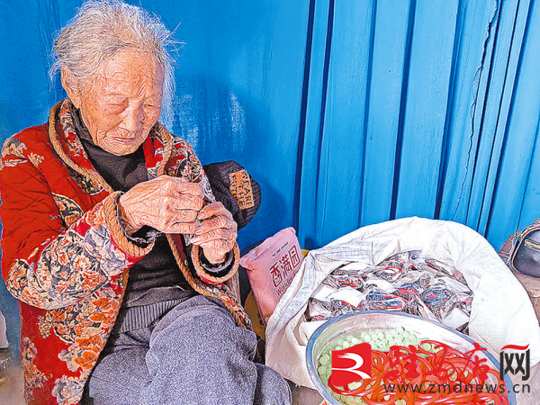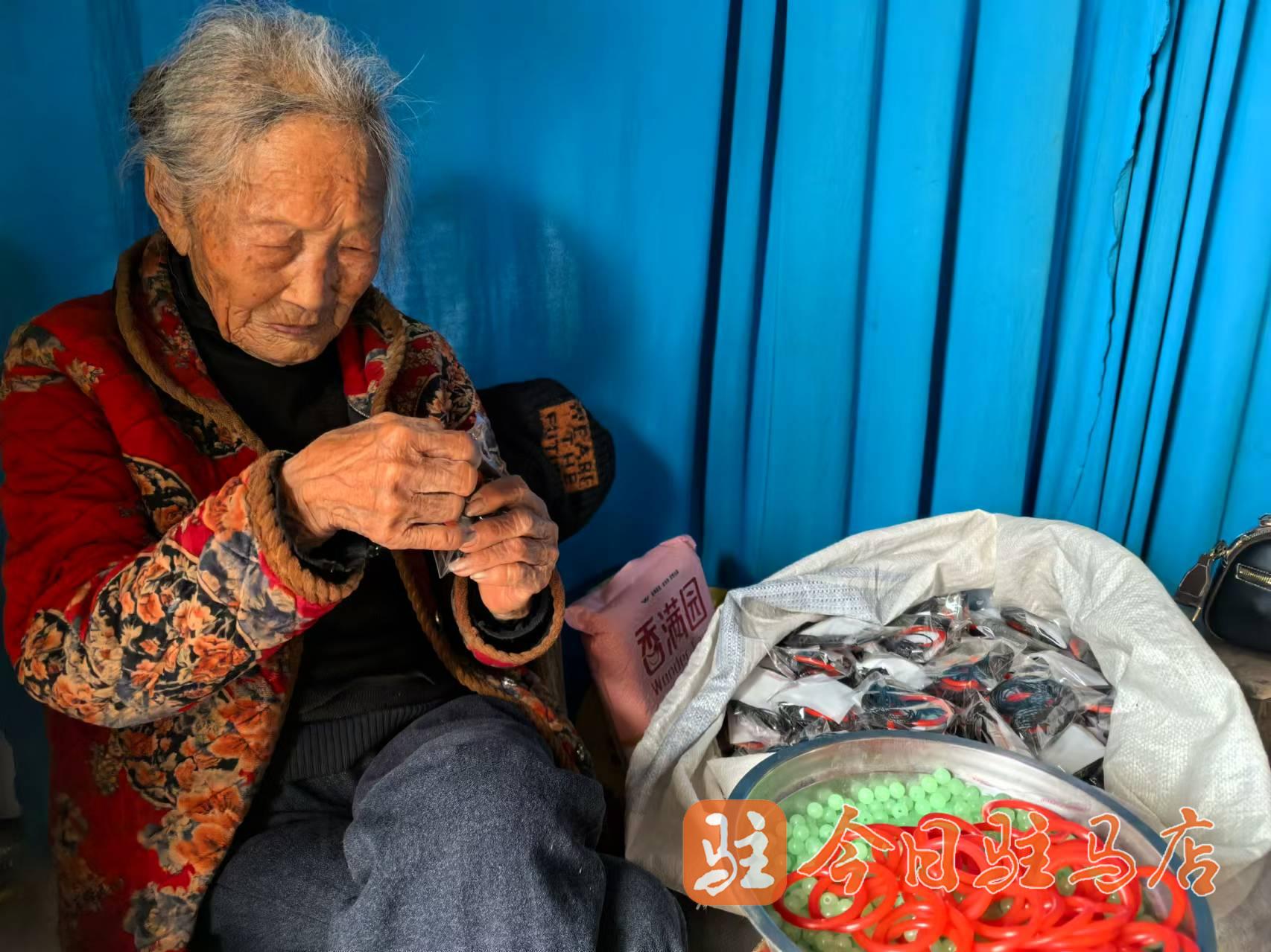 日前,记者见到102岁的苗多老人时,她正在家和儿子一起做手工。虽然手脚不太麻利,但是老人说:“闲着也是闲着,我慢慢干,多少还能挣点儿钱补贴家用。”