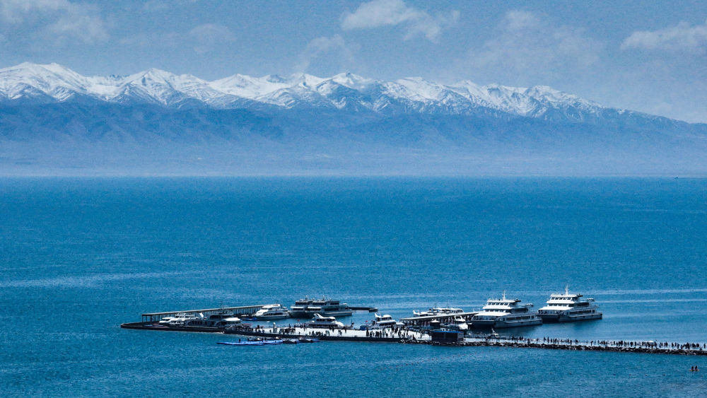 眼前的青海湖广阔无垠,湖面宛如绸带般绵延不绝,与远方的雪山相接,融入天际,成就了一幅如诗如画的美景。