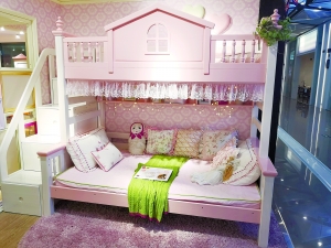 同时,记者在我爱我家门店注意到,店内家具以木质为主,极少用到坚硬的金属材料,导购员夏小姐介绍,由于两个小孩生活在一个房间,免不了嬉笑玩乐、追逐打闹,这是为了孩子的安全考虑。