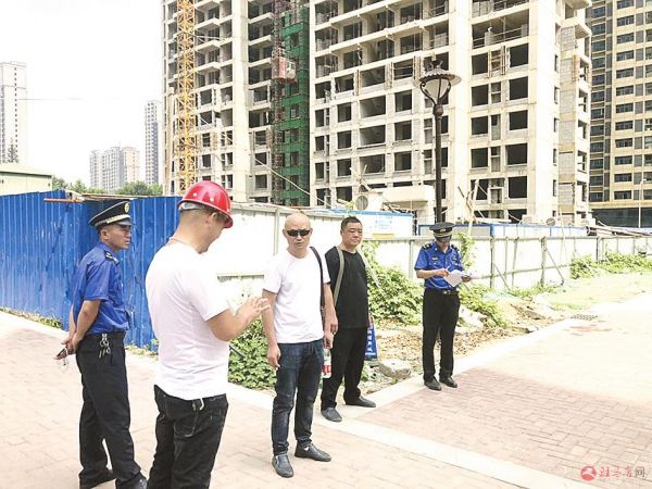 该街道环保督导组定期现场督导辖区建筑工地(如图),要求施工工地全面落实环保“六个百分百”,对不达标的建筑工地下达限时整改书,并作好巡查记录,跟踪问效。每天不定时巡查辖区施工工地、对违规情况现场拍照并取证存档。针对一时不能处理的,及时上报上级有关部门进行处理并通知行业网格及时处理,确保问题得到整改。