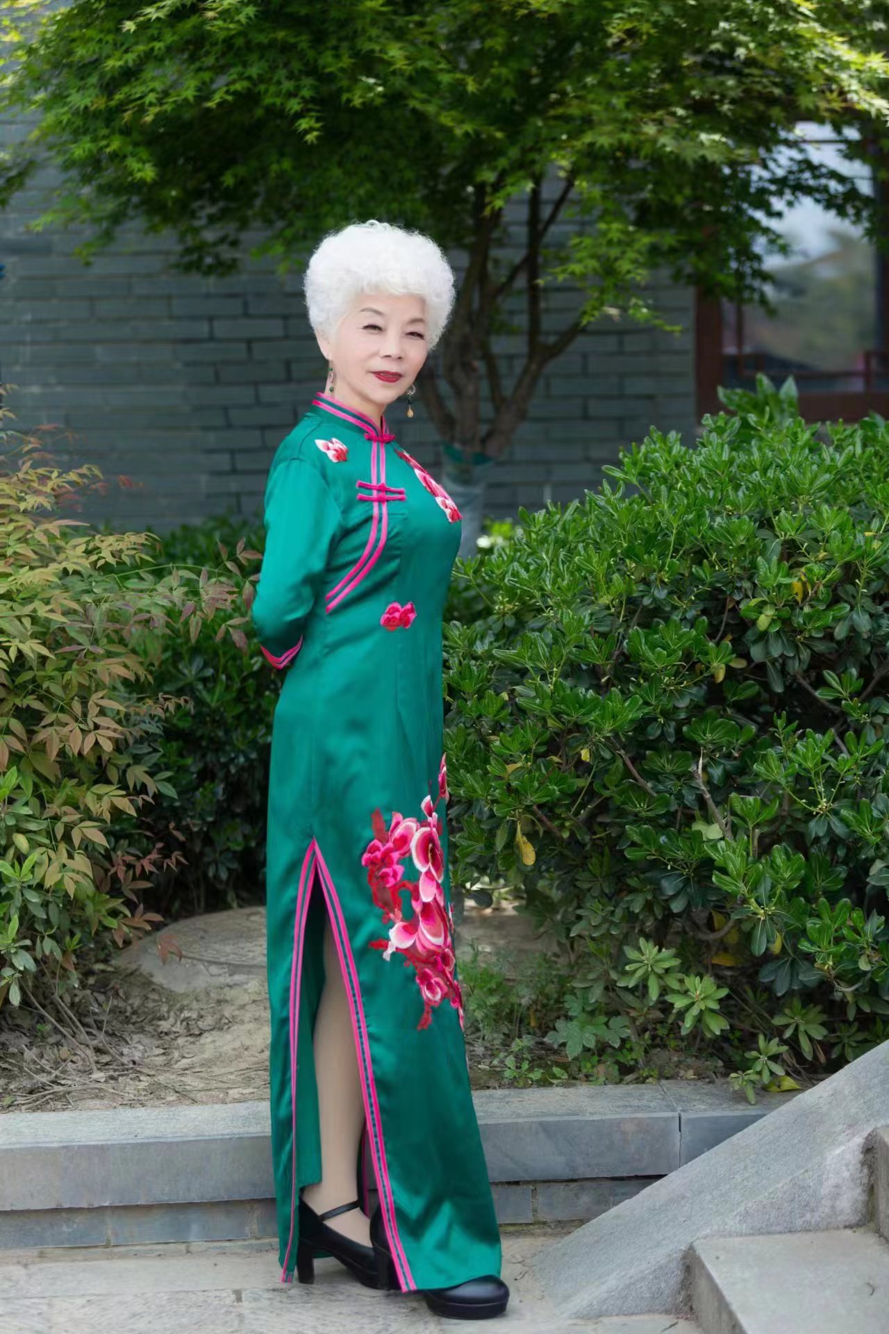 满头银发气质优雅淡定从容,乐观开朗待人热诚,举手投足间都透着优雅范儿,被队员亲切的称呼马姐、马姨,她就是今年已经77岁的驻马店市驿城区前王社区艺术团团长马凤仙。