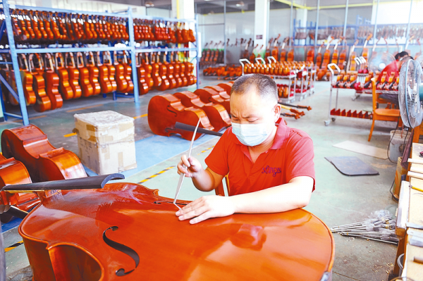 摘要:从外出务工到返乡创业再到致富引领,制琴业在确山县农村悄然生根,为乡村振兴注入新活力。图为近日河南昊韵乐器有限公司车间里,工人在制作提琴。