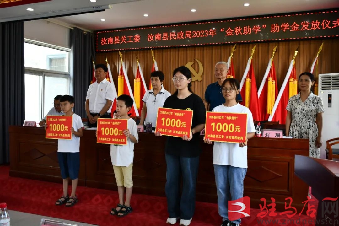 驻马店网讯(记者 邓丹华 通讯员 申振坤)8月23日,汝南县举行2023年“金秋助学”助学金集中发放仪式,为36名受助学生发放助学金3.6万元。县关工委执行主任杨莲,县委组织部副部长、县老干部局局长、县关工委办公室主任刘珊,县民政局局长罗方,三门闸街道党工委书记夏连升等出席仪式。