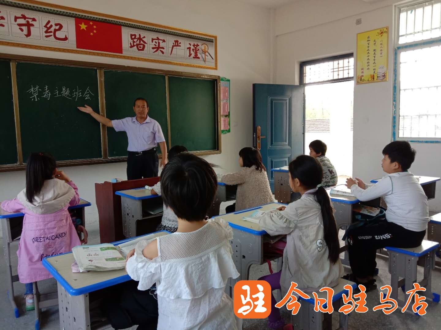 9月6日,新蔡县陈店镇新城向阳学校教师五年级二班班主任刘荣花正在向全班48名学生仔细认真地讲禁毒知识。与新城向阳学校一样,新蔡县陈店镇英才双语学校教师五年级一班班主任龚金兰在仔细认真向全班49名学生讲禁毒知识后,又对全班学生进行禁毒知识测试。