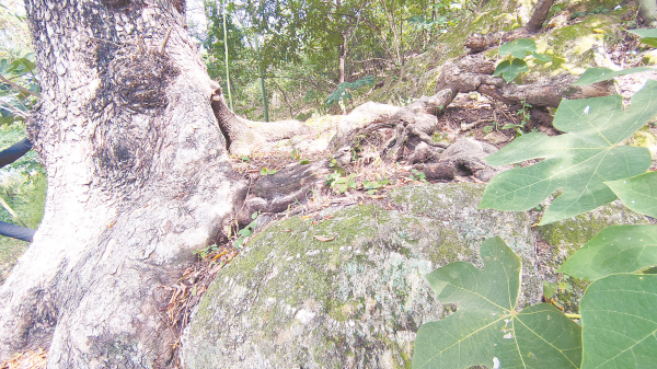 近日,记者在驿城区蚁蜂镇南老庄村东张湾的山坡上发现两棵奇特的大树。大树的根犹如八爪鱼一般相互缠绕,而且都生长在石头上。
