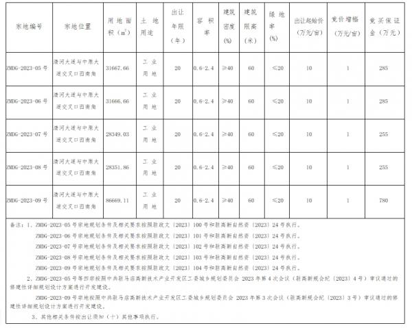 经驻马店市人民政府批准,以拍卖方式出让zmdg-2023-05号等五宗国有建设用地使用权。现将有关事宜公告如下: