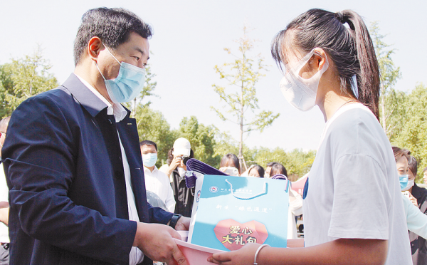 校长苏新留为新生送上大礼包。