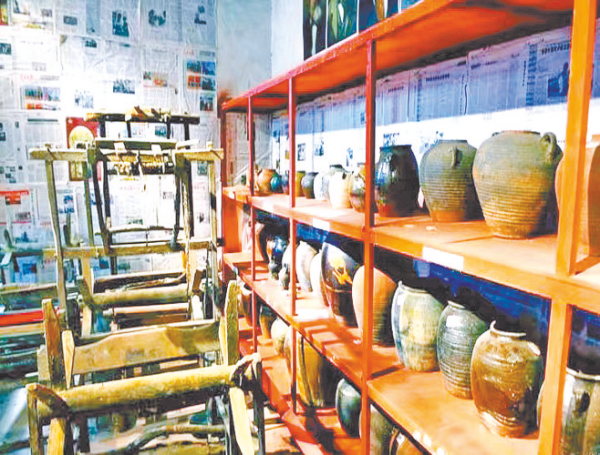 大庄乡愁馆内300多件农具和生活用具,都是村庄的“亲历者”与“见证者”。每一件农具都是祖辈父辈几代人土里刨食的工具,在春播秋收的过程中完成岁月流转与人事更迭。纺车、小推车、针线包、锄头、录音机、缝纫机、手表、自行车,虽然光鲜不再,虽然物是人非,可都会勾起一段刻骨铭心的回忆、一个荡气回肠的故事。