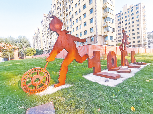 秋天的阳光透过1955工业文化创意产业园内的高大树木,照射在徜徉于园区内的游客身上。他们好奇的目光久久停留在一座座古朴的厂房、高耸的烟囱上,寻找历史的记忆。园区内随处可见的机械配件与创意雕塑、廊道与休闲广场、路边的草坪,构成一道回忆过去、认知历史的光影长廊。