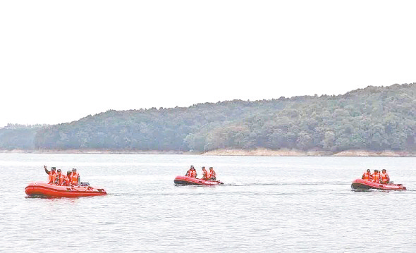 演练中,民兵们根据水上遇到的不同情况,进行高低速驾驶冲锋舟、水上搜索、水中救援等训练,充分展示了民兵们的应急反应和实战能力。