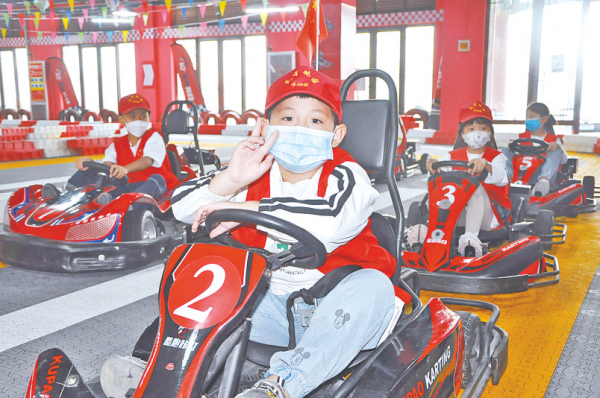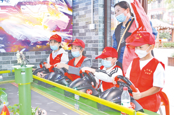 “共创温馨家园,共享文明硕果。”在皇家驿站景区内,到处树立着文明标语牌,提醒着大家文明旅游。半个小时的职业体验活动很快结束了,小记者们收获满满,他们还用镜头定格一个个精彩的瞬间,用笔和本记录一个个深刻的感悟。最后,小记者们在导游的带领下,还感受了一把沙漠坦克和卡丁车带来的刺激。