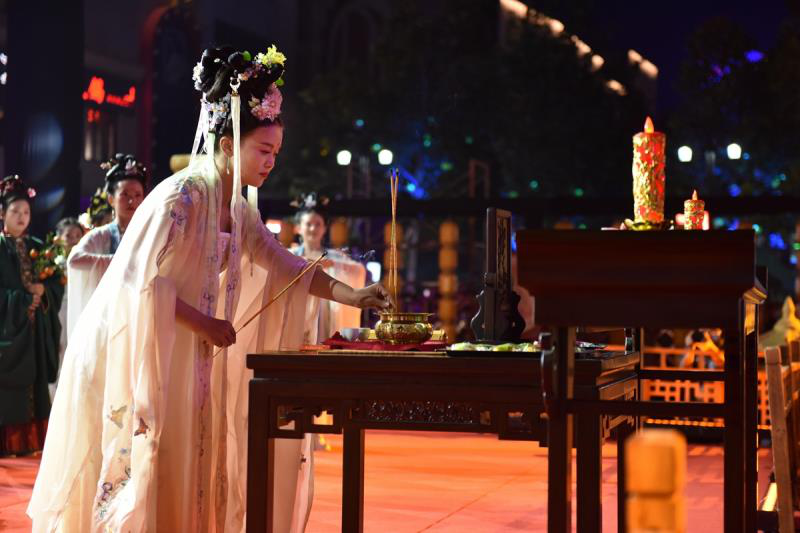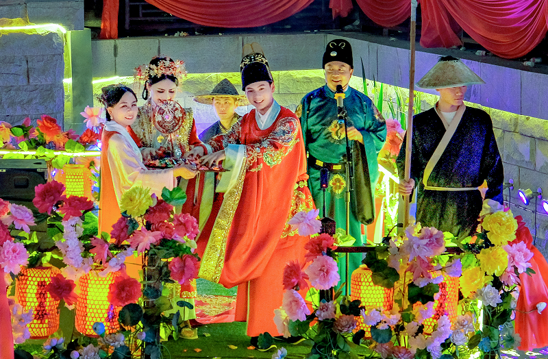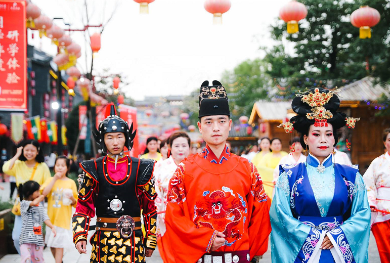 景区内日日有活动,月月有节庆。针对本届文旅产业博览会夜游皇家驿站活动,皇家驿站景区将旅游与当地历史文化相结合,精心打造了《成化帝回师驻马驿》实景演出,还有根据驻马店当地梁祝文化打造的《英台小姐姐》运河水上演艺、《追光驻马店》70-90年代的情景剧演出等文化演艺节目,将每天在各街区定点定时进行演出。