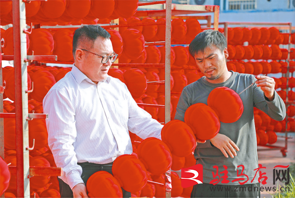 近日,在正阳县熊寨镇王楼村灯笼厂里,40多名村民加工的火红灯笼看上去红红火火,一盏盏灯笼照亮了产业发展、村民增收的乡村振兴之路。