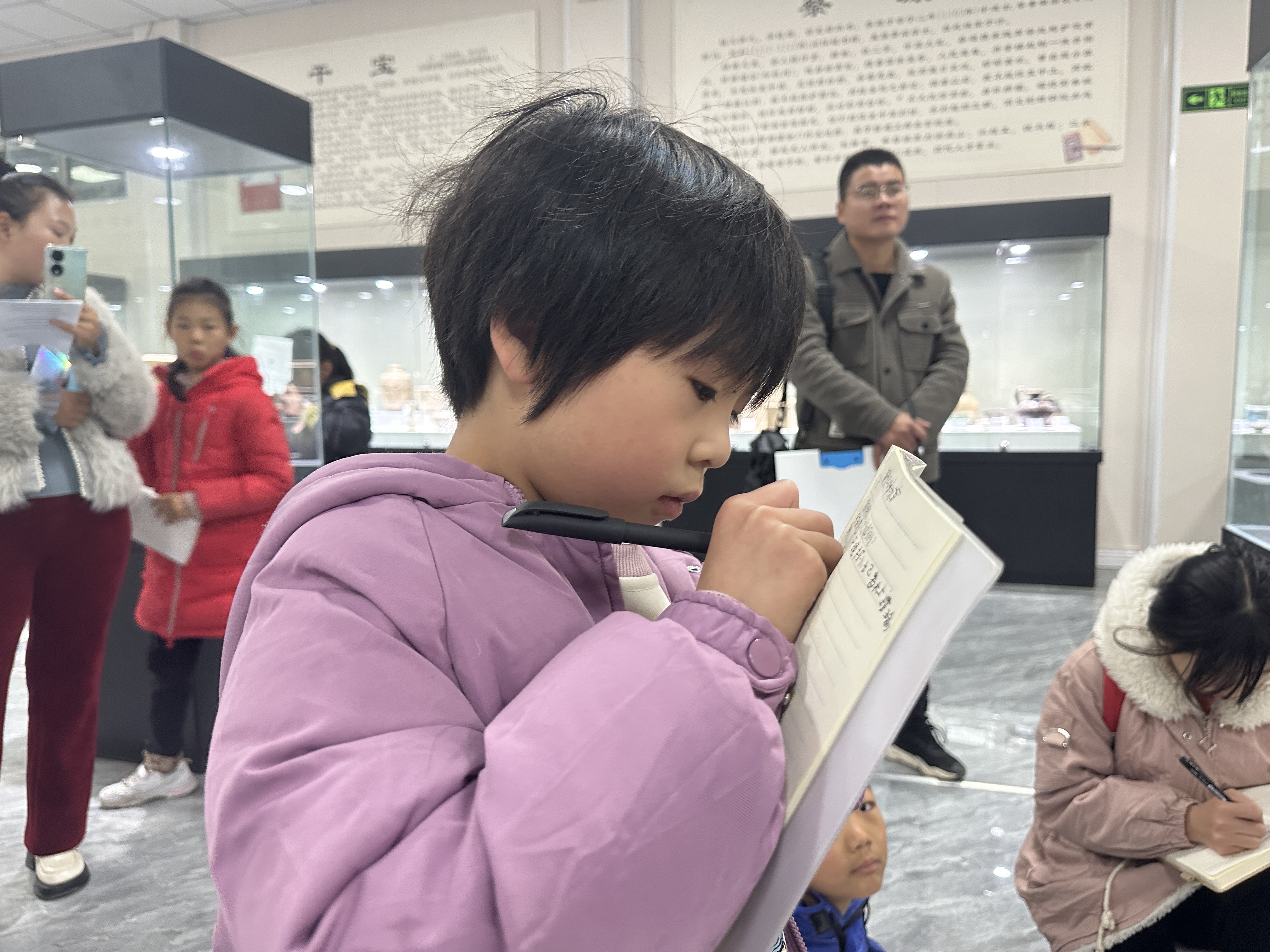 虽然刚经历了一场雨雪降温天气,但是丝毫没有影响小记者们参与活动的积极性,他们在家长的陪同下带着笔和采访本早早地来到集合地点。签到完毕后,指导老师向小记者们说明了开展此次活动的意义,现场指导小记者们如何提问、如何与采访对象交流、如何做好采访记录,小记者们认真聆听并做好笔记。随后,在老师和工作人员的带领下,小记者们排着整齐的队伍进入博物馆展厅。