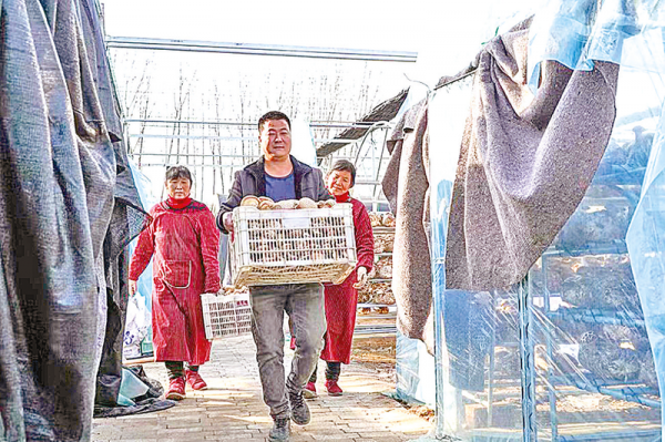 11月13日,天刚亮,泰山庙镇乔庄村村民王保谦和往常一样,早起忙完家务,就在自家庭院的食用菌大棚里忙碌了起来。和王保谦一起在大棚里劳作的还有同村的几十名村民,他们大多是村里的脱贫户,每人每月增收2000元左右。