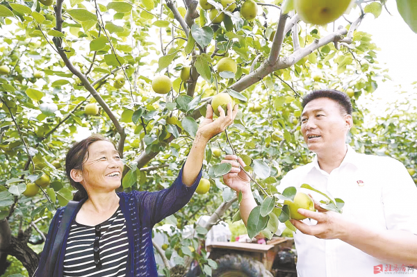 在贺新义的带领下,村民李建设返乡种植黄金梨450亩,年收入达260万元,先后吸引多位外出“能人”返乡创业。黄金梨种植、食用菌大棚、奶牛养殖、苗圃栽培、建筑公司、香椿产业、光伏发电、人力资源公司8项乡村振兴产业,吸纳全村及周边群众2800人在家门口就业,孟庄村人人有活干、家家有钱挣。