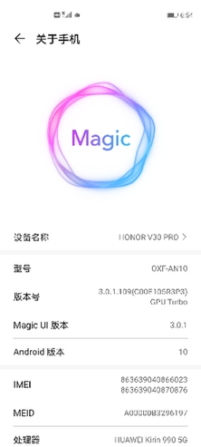 荣耀v30 pro搭载麒麟990 5g处理器,内置4100mah,40w有线快充,27w无线快充,支持无线反向充电。机身三围162.7*75.8*8.8mm,重206g。