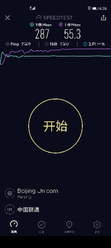测试使用开通过中国联通5g的sim卡进行测试,在4g转5g限速情况下,房间内仍可达到287mbps下载速度,上传速度为55.3mbps,如果在开阔空地5g满速全开,速度会更快。