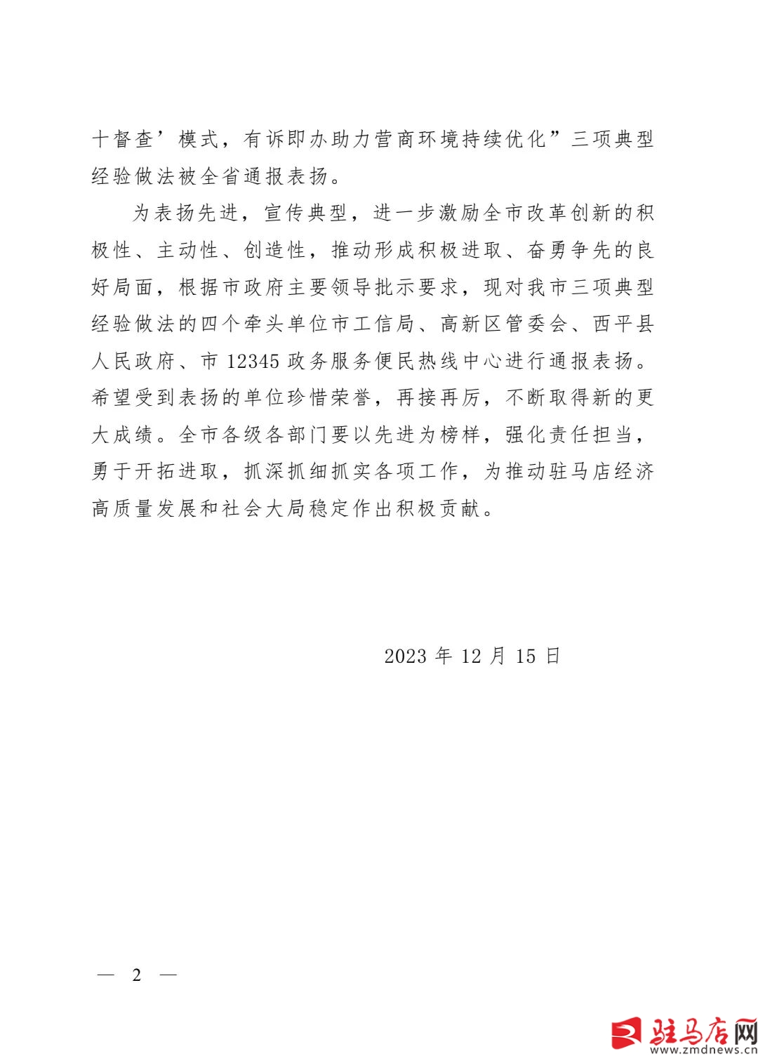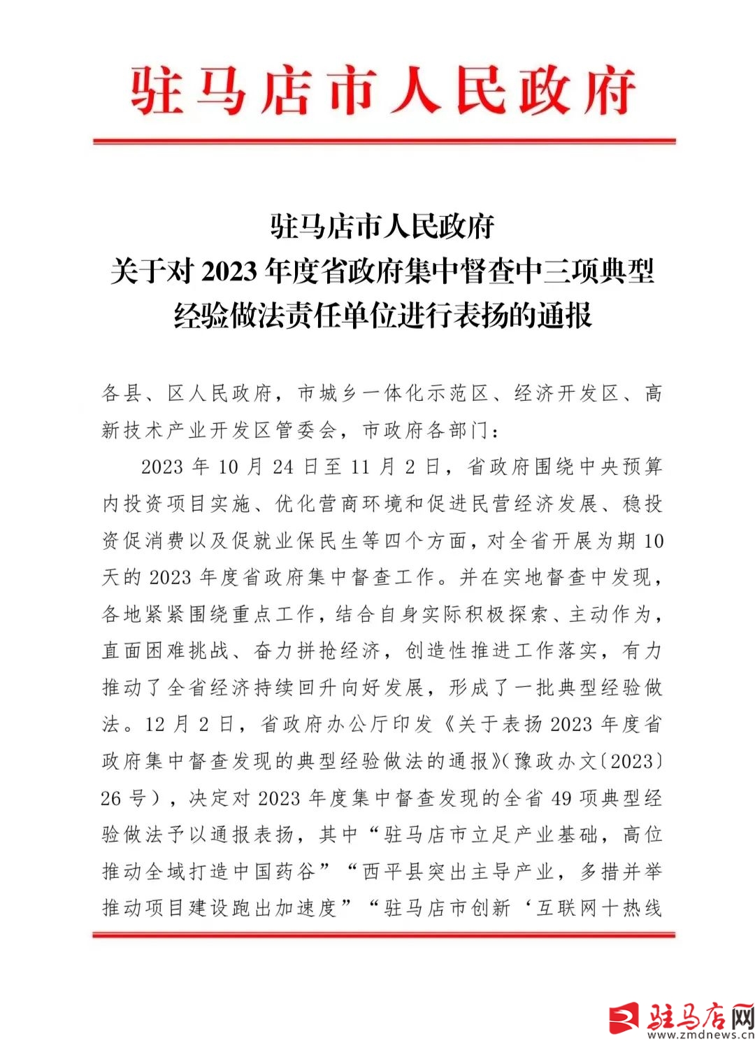 喜报!驻马店高新区喜获省政府、市政府通报表扬!-凯发旗舰厅