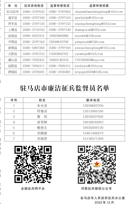 驻马店市征兵咨询监督电话