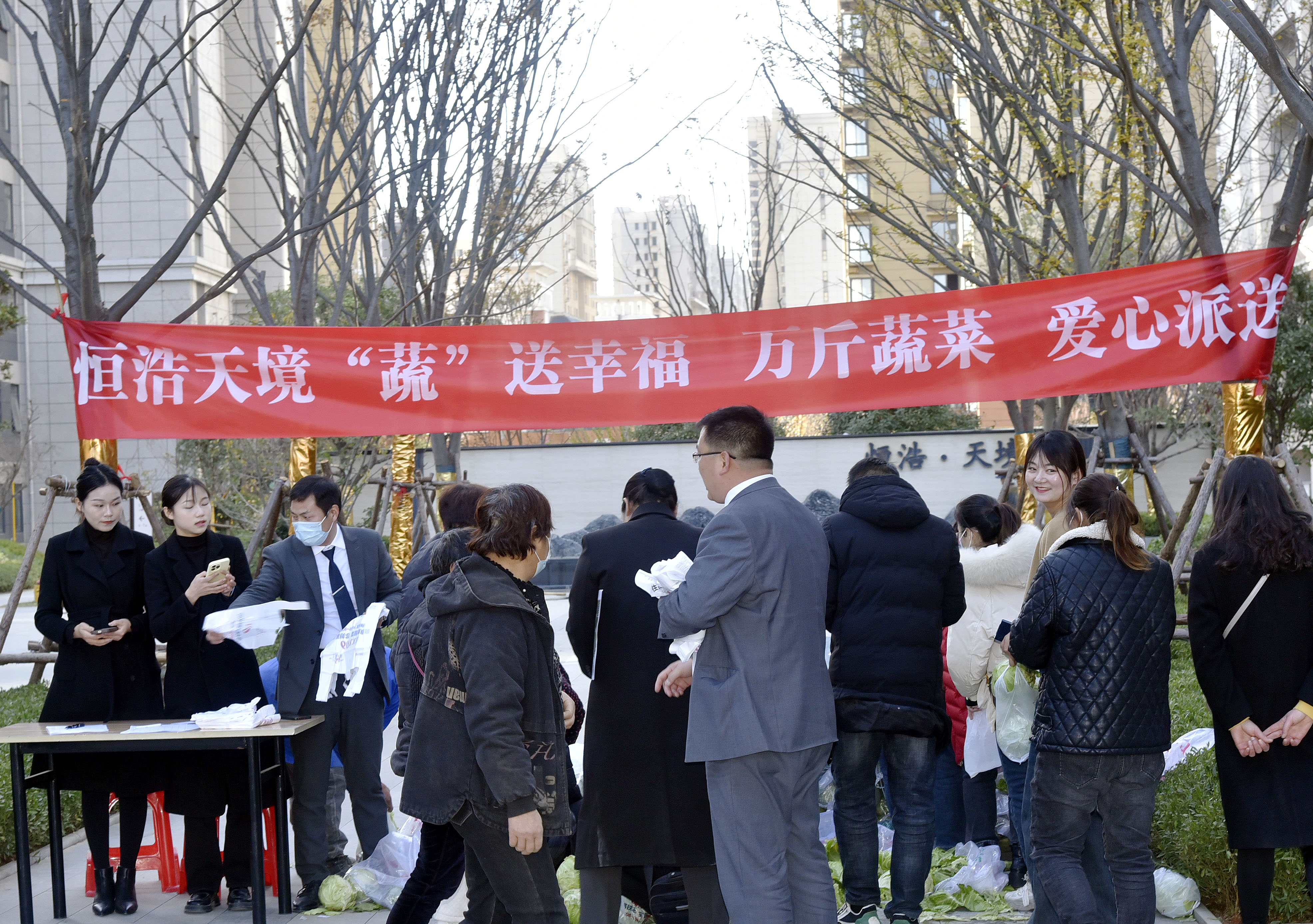 12月7日,大雪节气,恒浩·天境社区门口暖意融融,一场爱心助农活动正在这里开展。该项目购买了上万斤上蔡菜农丰收却滞销的蔬菜,免费送给到访的客人。
